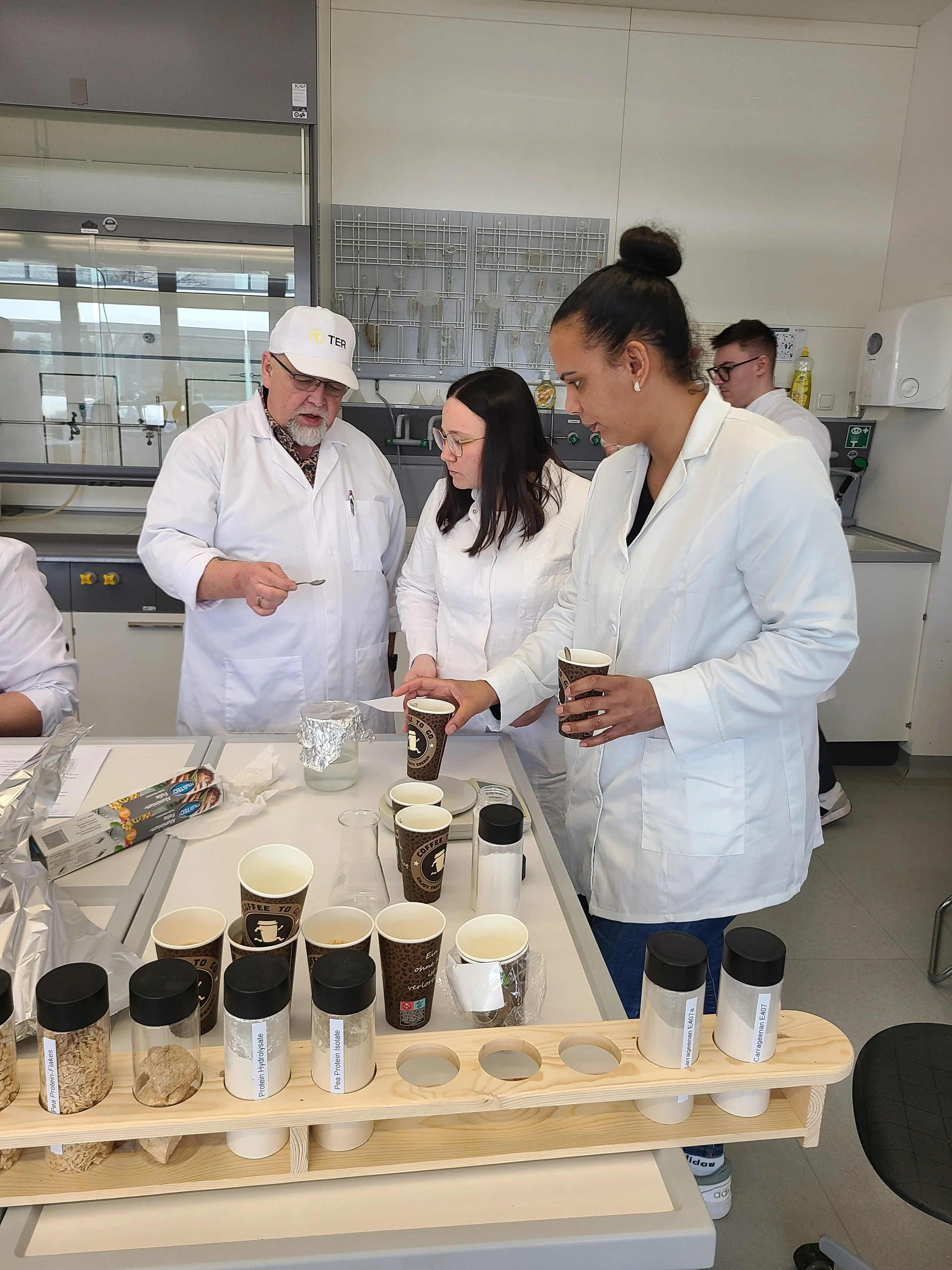 Im praktischen Teil des Seminars konnten die Teilnehmenden ihr Wissen direkt anwenden. Durch verschiedene Versuche wurden unterschiedliche Mischungen hergestellt und deren Eigenschaften untersucht. So konnten die Auswirkungen von Hydrokolloiden und Gelbildnern in Lebensmitteln anschaulich erlebt, verglichen und bewertet werden.